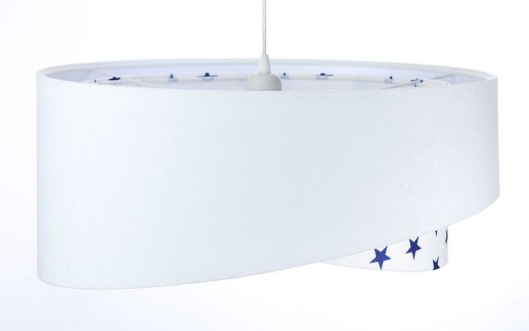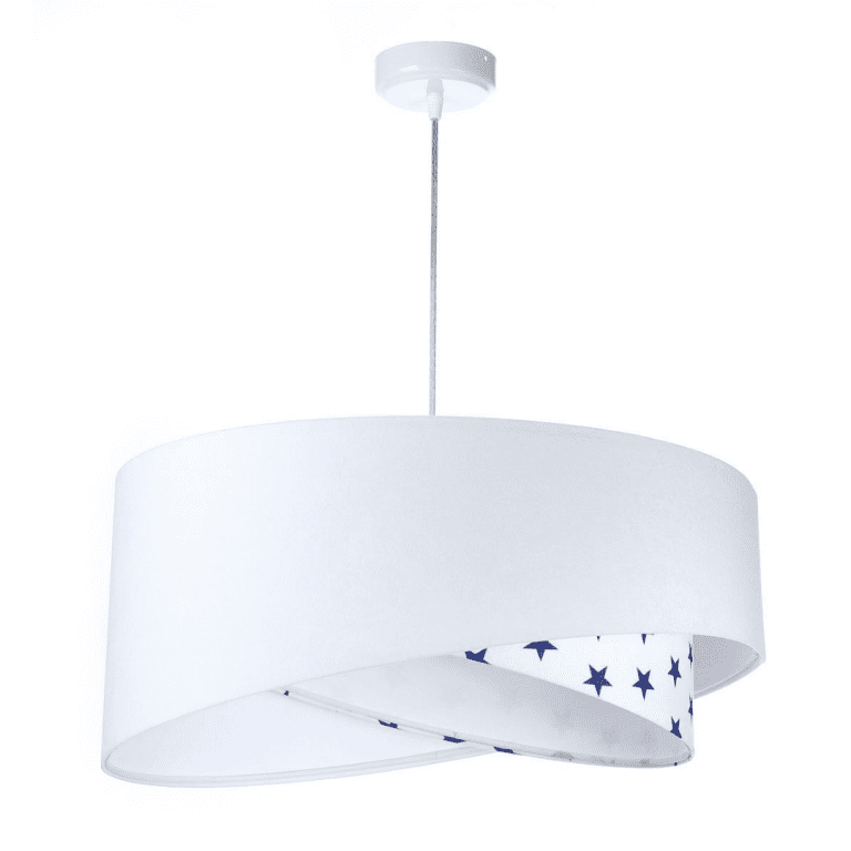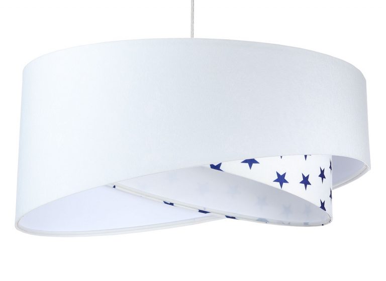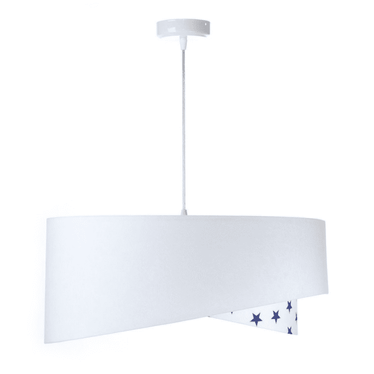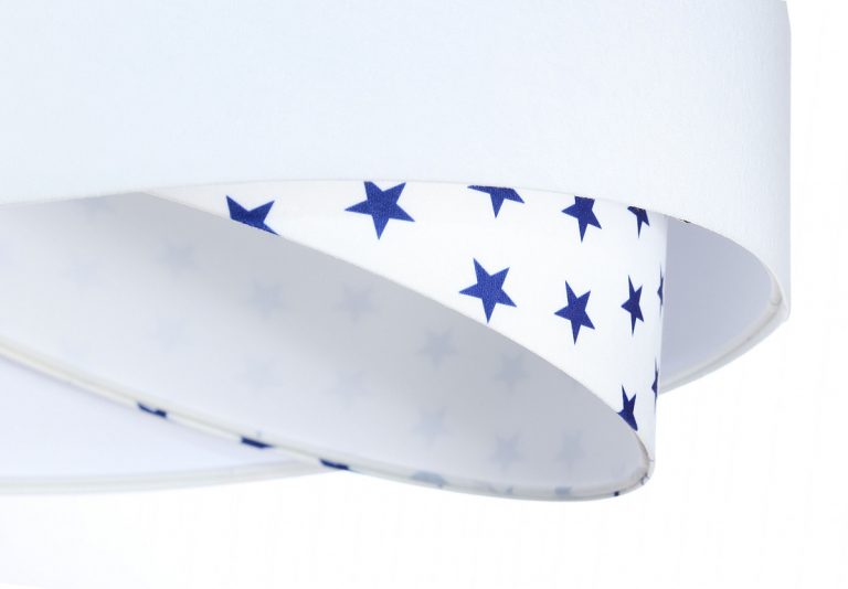 Biała lampa wisząca polecana jest przede wszystkim do pokoju dziecięcego, w którym motyw granatowych gwiazdek z pewnością pasować będzie do radosnej i fantazyjnej stylistyki wnętrza. Białe, kremowe lub szare meble, bawełniany puszysty dywan oraz kontrastowe poduszki i przytulanki będą idealnym tłem dla tego nowoczesnego oświetlenia sufitowego.
