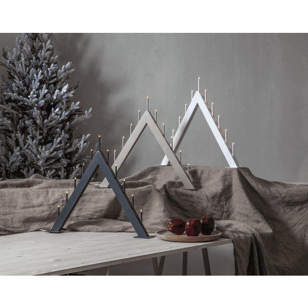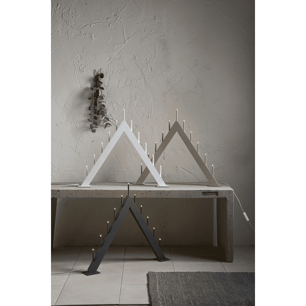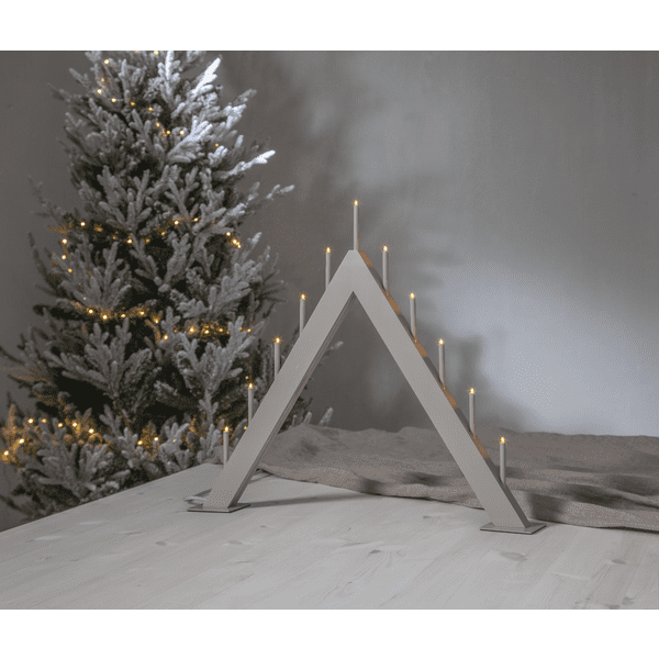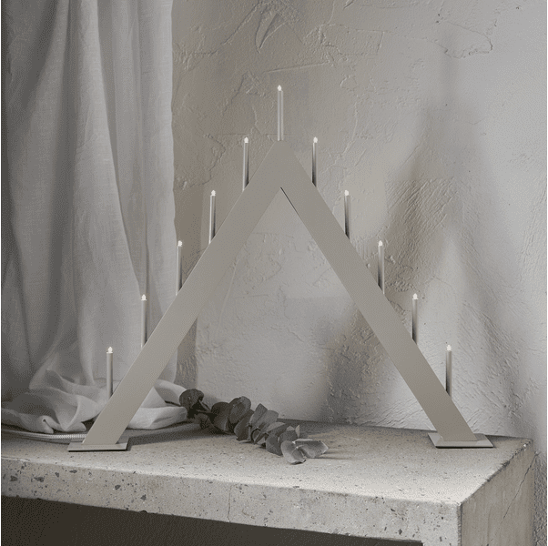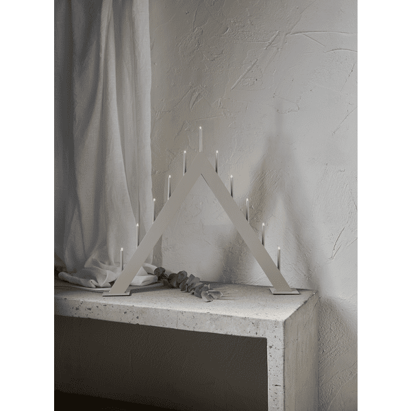 Minimalistyczna forma, stonowana kolorystyka i solidne wykonanie to główne cechy, jakimi wyróżnia się świecznik świąteczny Azalia. Model ma formę trójkąta, który kojarzy się z kształtem choinki. Azalia Beżowy świecznik do okna przystosowany jest do aż 11 diod LED, które ustawione są względem siebie w równych odstępach.