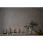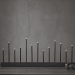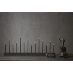 Oferowany przez nasz sklep Azalia Czarny świecznik ozdobny ma aż 77 cm szerokości, dlatego wyjątkowo dobrze prezentuje się postawiony na parapecie okna, na długim stole lub komodzie z większym blatem. Świecznik w czarnym kolorze Azalia wyposażony jest w czternaście ledowych świec o różnej wysokości. Model przystosowany jest do żarówek E5.