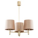Oferowany model ma postać lampy sufitowej z ramionami wykonanymi ze stali w kolorze złotym, które wyposażone są w klasyczne w formie trzy welurowe beżowe abażury. Zarówno dobór materiałów, jak i ich kolorystyka sprawia, że całość prezentuje się zjawiskowo! Beżowa lampa sufitowa Ponte Plus 3 w klasycznym stylu idealnie harmonizuje z wszystkimi aranżacjami, w których dominuje elegancja. Model doskonale pasuje, między innymi, do wnętrz klasycznych, glamour i nowoczesnych.