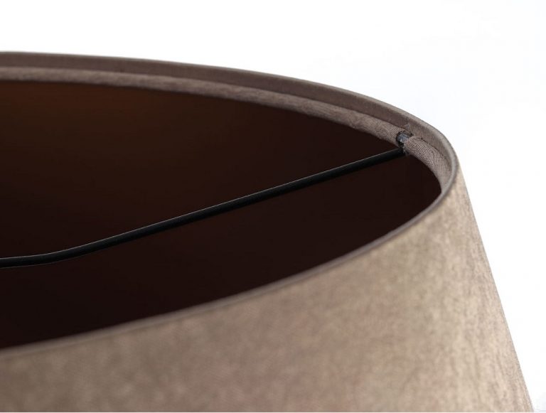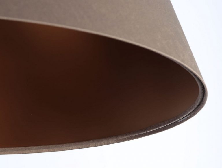 Stożkowy abażur lampy sufitowej o dolnej średnicy 50 cm dobrze rozprasza światło, miedziane wnętrze dodatkowo je odbija napełniając pomieszczenia wyjątkowym blaskiem. Satyna jest podklejona i wzmocniona, więc abażur utrzymuje swój kształt. Dzięki opcji regulacji wysokości, można w większych pomieszczeniach wykorzystać nawet kilka modeli Nella na różnym poziomie.