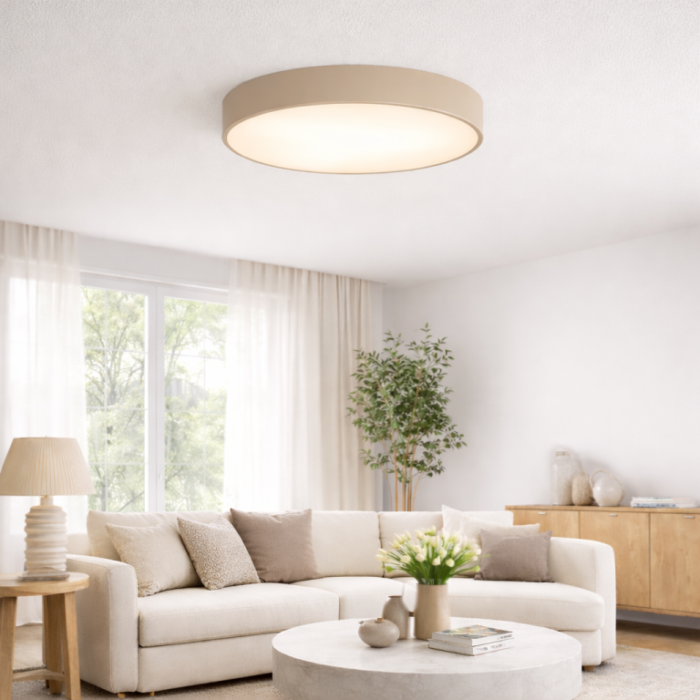 Beżowy plafon sufitowy do sypialni Newa 60 cm