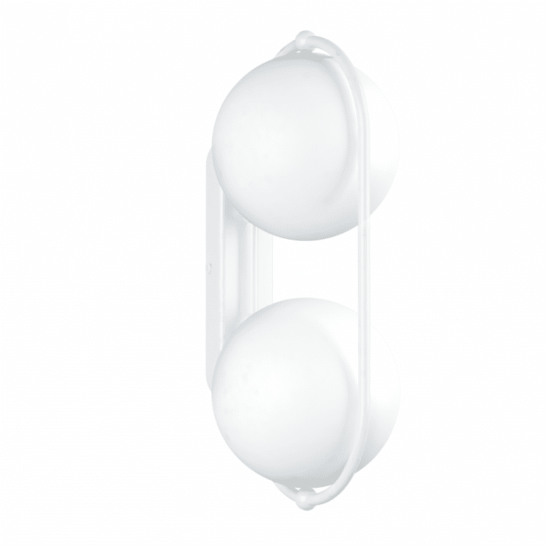 Dwie szklane kule o średnicy 15 cm każda przymocowane zostały do metalowego stelaża, który je okala. Solidne wykonanie w połączeniu z wyjątkowy designem sprawiają, że jest to lampa ścienna, która znajdzie swoje zastosowanie w wielu różnych pomieszczeniach. Za jej pomocą możesz nie tylko rozświetlić korytarz, ale również wybrane miejsce w salonie lub sypialni.