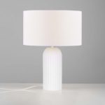 Biała lampa stołowa Tumarapi na gipsowej podstawie