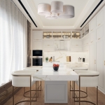 Biała lampa wisząca na listwie Enkel 3 L nad wyspę kuchenną