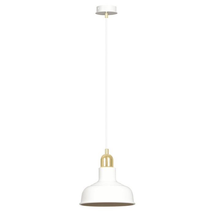 Metalowy klosz tego modelu oświetlenia został pomalowany metodą proszkową na piękny biały kolor. Do tej nowoczesnej lampy wiszącej można zainstalować źródło światła o maksymalnej mocy 60W, którym mogą być zarówno klasyczne żarówki, ale także energooszczędne żarówki LED.