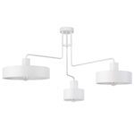 Na biały żyrandol Nifo składają się trzy efektownie wygięte ramiona, na których umieszczono płaskie kielichowate klosze w różnym rozmiarze. Klosz najmniejszy ma średnicę 15 cm, większy jest szeroki na 25 cm, a średnica klosza największego wynosi 35 cm. Cała lampa salonowa rozciąga się na szerokość 63 cm i jest wysoka na prawie metr (dokładnie 93 cm). Upewnij się, że masz pod sufitem odpowiednią ilość miejsca, aby żyrandol Nifo mógł prezentować się w swojej całej okazałości!