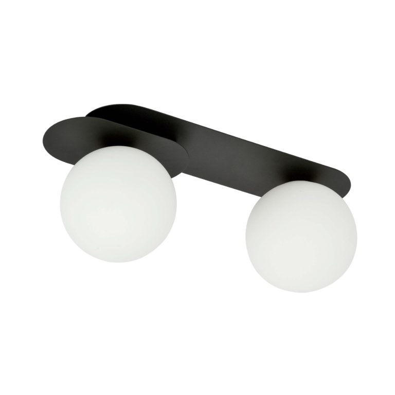 Każdy klosz ma postać idealnej kuli, wykonanej z białego szkła. Obie mają również identyczną średnicę 15 cm. Lampa sufitowa z białymi kloszami Rahim 2 wypełnia wnętrze przyjemnym, miękkim światłem, które nie razi w oczy, nawet jeśli bezpośrednio spojrzysz w stronę oświetlenia. Do roli źródeł światła wybrać możesz zarówno klasyczne żarówki, jak i te typu LED, które wyróżniają się mniejszym poborem mocy oraz dłuższą żywotnością.