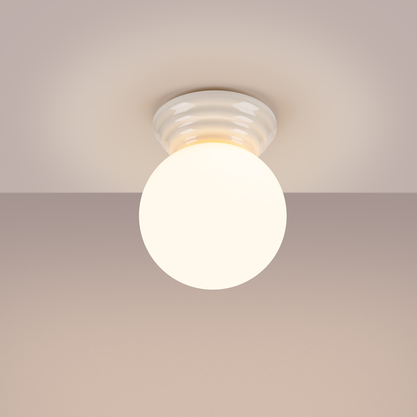 Biała lampa sufitowa z ceramiki Greta – biały, okrągły klosz