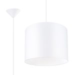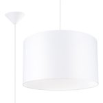 Lampa do salonu Bruno wyposażona jest w tkaninowy klosz w kształcie walca, który doskonale rozprasza światło. Model dostępny jest w dwóch wielkościach do wyboru: S – z kloszem o średnicy 30 cm oraz M – z kloszem na 40 cm. Biała lampa wisząca Bruno z abażurem posiada również regulowany przewód, idealny, aby samemu dopasować wysokość, na jakie ma się znajdować oświetlenie.