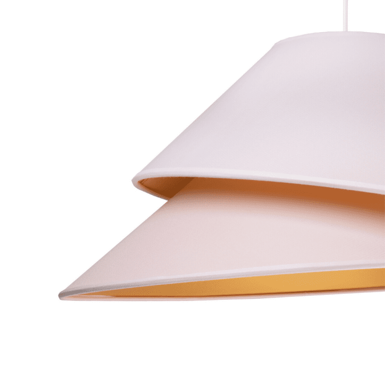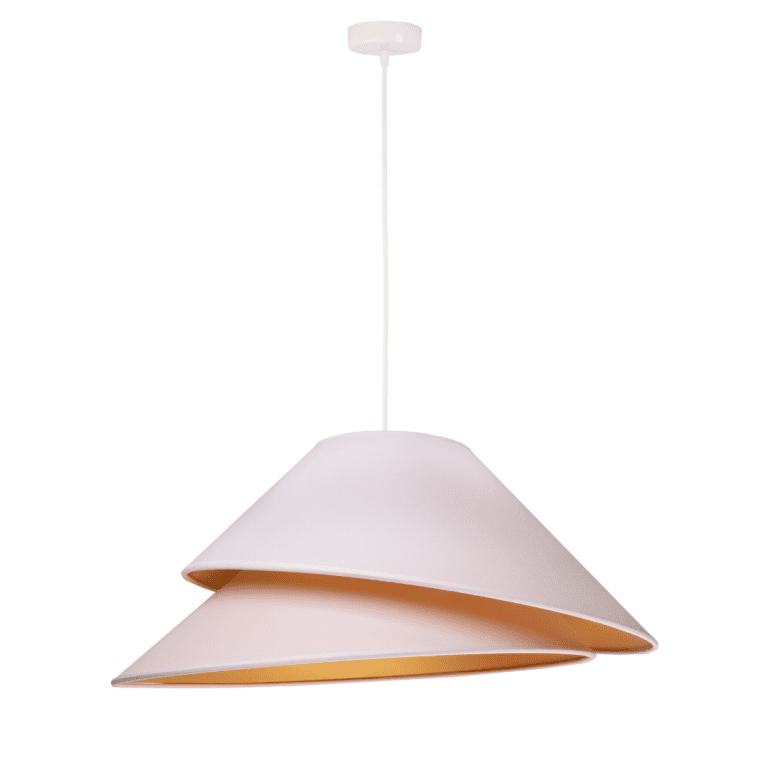 Model Coco z pewnością polubi się z niskimi pomieszczeniami, gdyż posiada on możliwość regulacji długości zwisu. Dzięki złotemu wnętrzu abażuru światło mieni się pięknym blaskiem rozproszonym po całym pomieszczeniu.