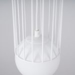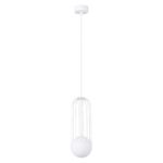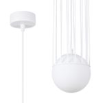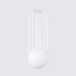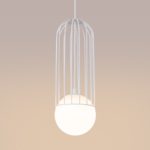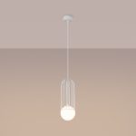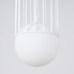 Lampa wisząca w białym kolorze Darius przyciąga do siebie uwagę za sprawą klosza, który składa się z dwóch elementów: drucianej siatki w kształcie tuby oraz szklanej kuli, w której znajduje się oprawka na żarówkę. Biała lampa wisząca Darius w unikatowym kształcie przystosowana została do energooszczędnych żarówek LED, także do tych z funkcją kontrolowania poziomu natężenia światła.