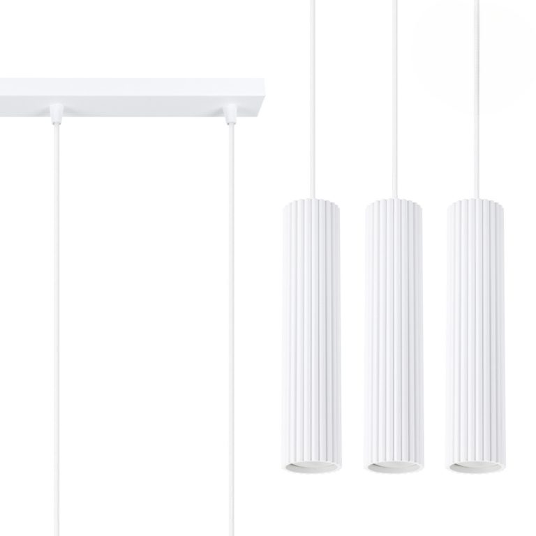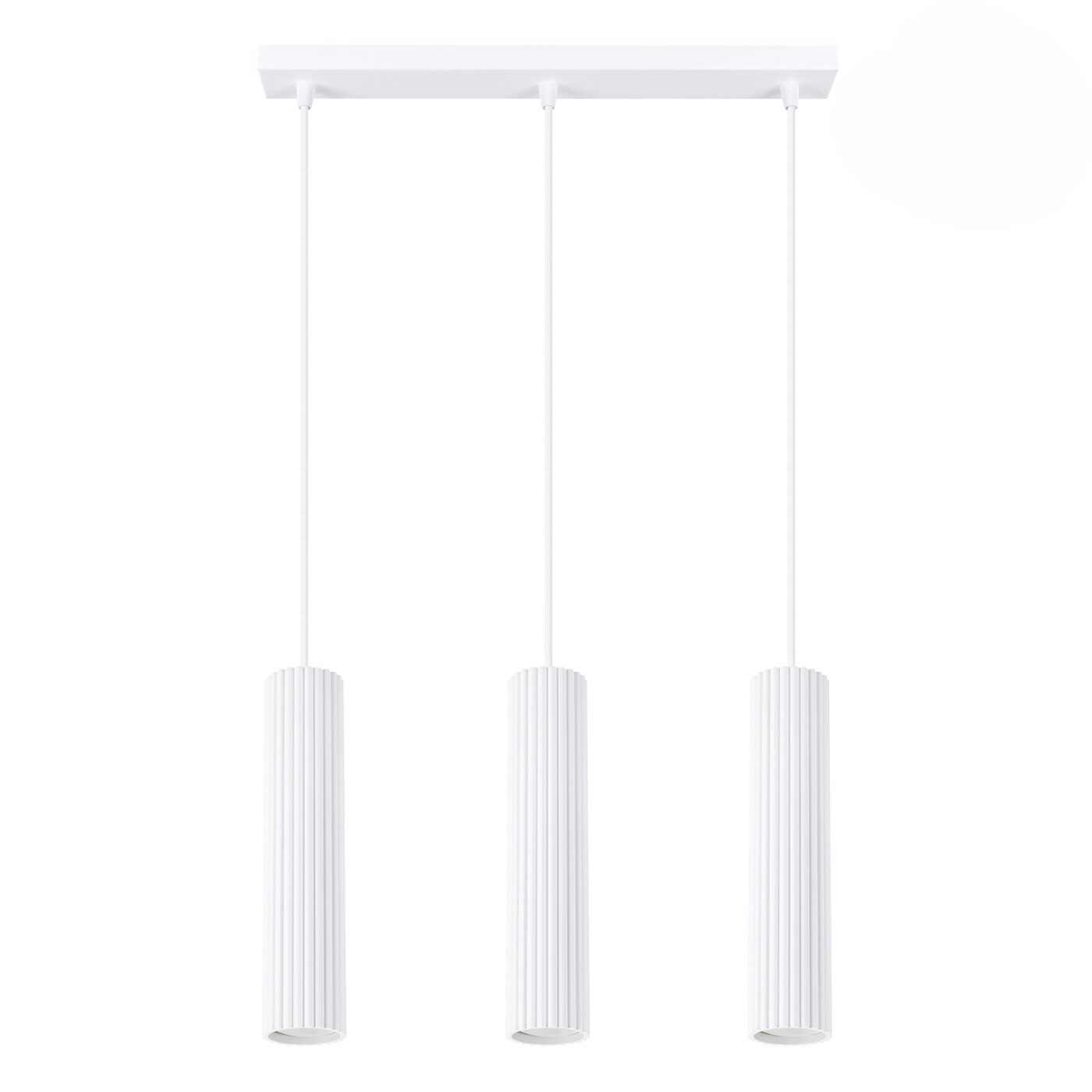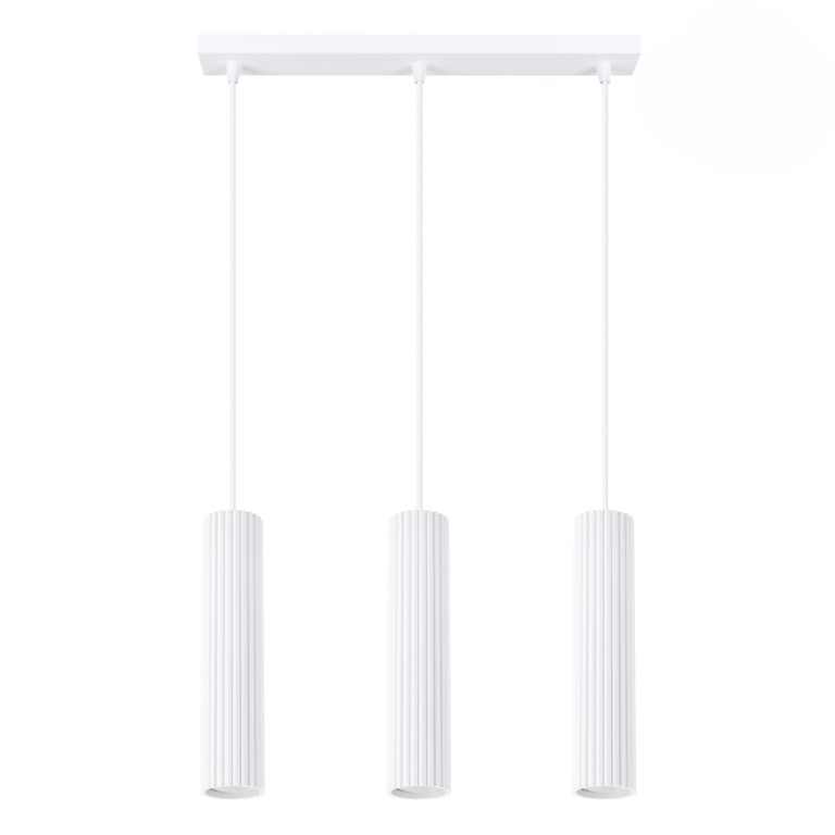 Jeśli szukasz nie tylko skutecznej, ale i nowoczesnej w designie oprawy świetlnej, biała lampa wisząca Dolkar 3 na metalowym stelażu ma wszystko, czego potrzebujesz! To model, który charakteryzuje się minimalizmem: składa się jedynie z podłużnej listwy oraz trzech kloszy z kablami.