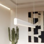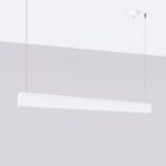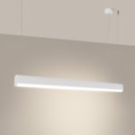 Biała lampa wisząca Farge o prostym designie wyposażona jest w klosz w postaci belki, w której znajduje się zintegrowane oświetlenie LED. Oprawa emituje ciepłe światło o optymalnej temperaturze barwowej na poziomie 3000 K. Lampa wisząca-listwa Farge ma szerokość 120 cm i wysokość 150 cm, którą możesz jednak regulować za pomocą linek montażowych.