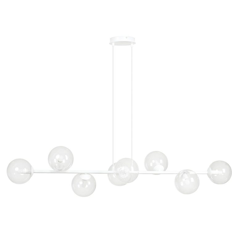 Dzięki przezroczystości i ilości kloszy światło dociera, do wszystkich zakamarków wnętrza doskonale je oświetlając. Ta lampa przedstawia minimalizm i klasę w swojej najlepszej formie. Okrągłe klosze i prosty stelaż to hit ostatnich sezonów. Jako że konstrukcja została wykonana z najwyższej jakości stali malowanej proszkowo, jest odporna na przebarwienia i wszelkiego rodzaju uszkodzenia.