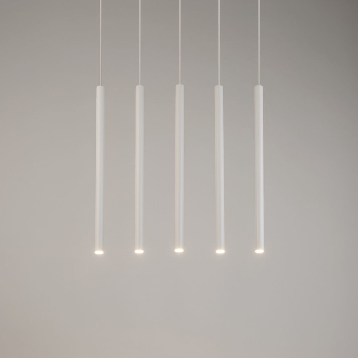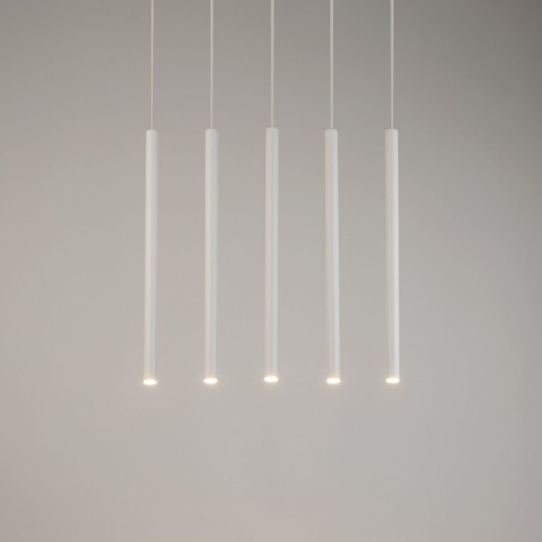 Biała lampa wisząca Icicle 5 z regulacją długości to również minimalistyczny design, która doskonale wpisuje się we wszystkie nowoczesne aranżacje. Rekomendowana oprawa oświetleniowa najlepiej prezentuje się w jasnych i przestronnych wnętrzach, jednak dzięki uniwersalnej kolorystyce nic nie stoi na przeszkodzie, aby zestawić ją również z aranżacjami utrzymanymi w zupełnie odmiennej tonacji.