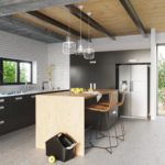 Biała lampa wisząca na listwie Enkel 3 L nad wyspę kuchenną