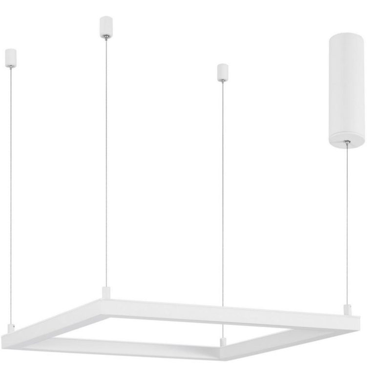 Proponowany przez nas model możesz wykorzystać jako lampę wiszącą do salonu, biura oraz innych wnętrz, które potrzebują wyjątkowo skutecznego oświetlenia. Oferowana oprawa charakteryzuje się designerskim wyglądem: wyposażona jest w ledowy panel świetlny w formie kwadratowej ramy oraz specjalne linki mocujące. Biała lampa wisząca o ciepłej barwie światła LED Jaen S umożliwia zastosowanie zewnętrznego ściemniacza, co przyda się zawsze wtedy, gdy potrzebować będziesz zmniejszyć intensywność oświetlenia.
