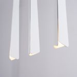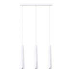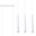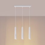 Biała lampa wisząca Roman 3 na listwie sufitowej posiada trzy charakterystyczne podłużne klosz o nietypowym geometrycznym kształcie. Każdy z nich ma wysokość 34 cm oraz szerokość 5 cm. Lampa wisząca nowoczesna Roman 3 emituje wąski strumień światła i przystosowana jest do trzech żarówek LED, które pozwolą Ci zaoszczędzić na rachunkach za prąd.