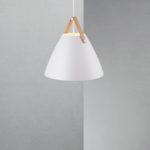 Biała lampa wisząca Strap w nowoczesnym designie wyposażona jest w jeden klosz w kształcie kopuły, wykonany z metalu – odpornego na uszkodzenia i wyjątkowo łatwego w utrzymaniu. Bryłę klosza uzupełnia skórzany pasek w brązowym kolorze, zawieszenie oraz podsufitka. Ponadto metalowa lampa wisząca Strap dostępna jest w kilku rozmiarach do wyboru: od najmniejszej S do największej XL.