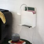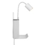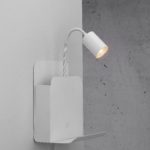 Biała lampka ścienna Roomi z regulowanym ramieniem składa się z punktowego źródła światła, które możesz skierować w dowolną stronę, zapewniając sobie całkowity komfort podczas czytania lub pracy. Kinkiet punktowy Roomi wyposażony został także w miejsce na książkę, zeszyty, czy czasopisma, a także w małą półeczkę i stację ładującą USB. Cała lampa do sypialni Roomi ma wysokość 28,2 cm, szerokość 24,8 cm oraz głębokość 16,5 cm. Klosz przystosowany jest do różnych źródeł światła (w tym do żarówek LED).