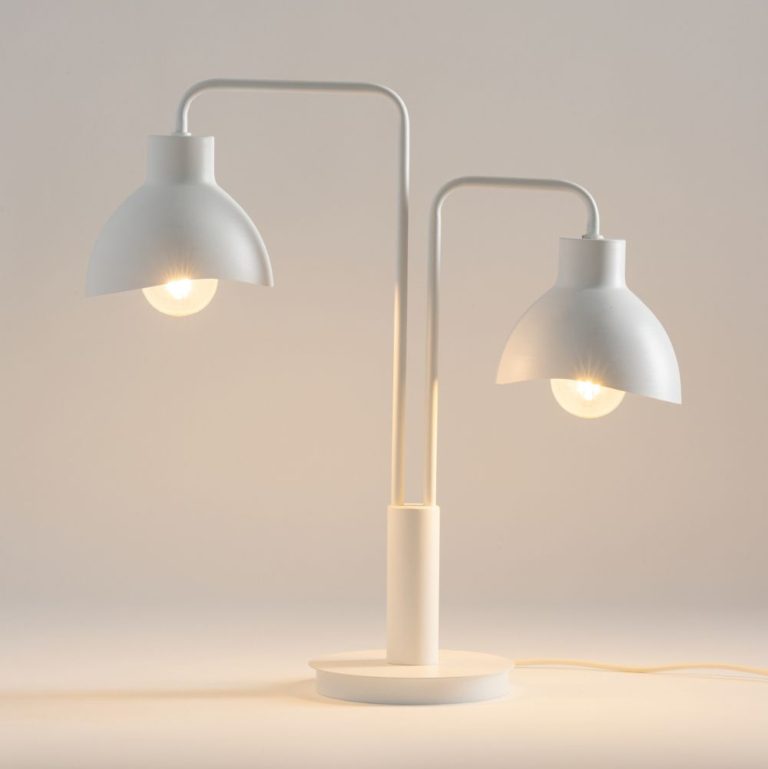 Biała lampka stołowa Joan 2 w nowoczesnym stylu