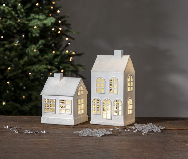 Biały domek do postawienia na komodę Vinter