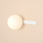 Konstrukcja białego kinkietu naściennego Garda opiera się na dwóch głównych elementach: metalowym stelażu w formie listwy do zamontowania na ścianie oraz klosza w kształcie kuli, który wykonano z mlecznobiałego szkła. Kinkiet-kula Garda ma szerokość 36 cm oraz głębokość 16 cm, dzięki czemu doskonale sprawdza się nawet w mniejszych pomieszczeniach. Model możesz wykorzystać na przykład w roli lampy ściennej do sypialni, montując ją przy łóżku.