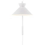 Biały kinkiet ścienny Dial z włącznikiem wyróżnia się wyjątkowo prostą formą. Oprawa składa się z łukowatego stelaża z mocowaniem do ściany oraz stożkowego klosza, który kieruje światło ku dołowi. Kinkiet z włącznikiem Dial ma wysokość 40,2 cm oraz szerokość 25 cm, która jest równa średnicy samego klosza. Model przystosowano do jednej standardowej żarówki E27. Oferowana lampa ścienna wykonana została z odpornego na uszkodzenia metalu.