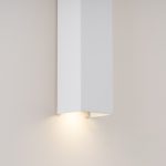 Biały kinkiet ścienny FREYA w nowoczesnym stylu wyróżnia się pionowym kloszem w formie listwy, który emituje światło skierowane w dół, dzięki czemu wnętrze wypełnia się przytulną atmosferą – idealną do wieczornego relaksu. Nowoczesny kinkiet FREYA ma jedynie 8 cm szerokości i 6 cm głębokości, dlatego nadaje się nawet do małych pomieszczeń. Model możesz wykorzystać na przykład w roli lampy do sypialni, ale także zamontować w wąskim korytarzu, czy przy schodach na piętro.