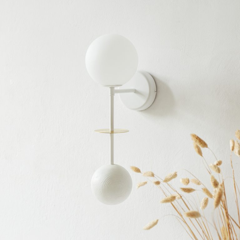Biały kinkiet ścienny OIO B z mosiężnym elementem