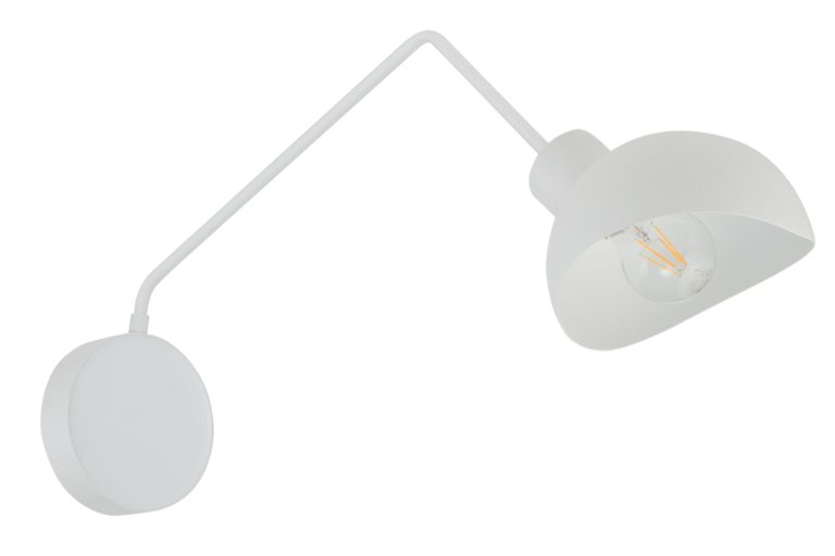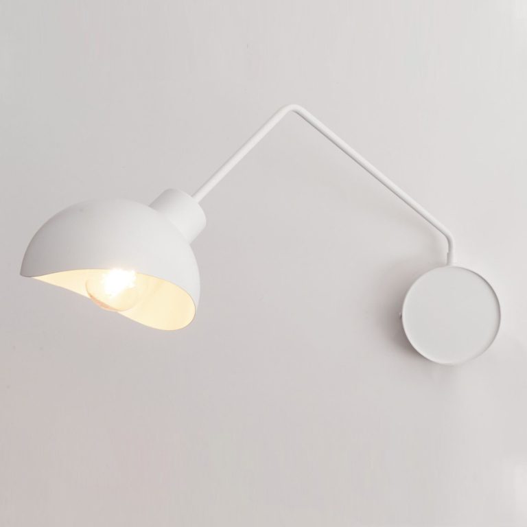 Kinkiet nowoczesny Ankara został wykonany z lakierowanej stali, co zapewnia mu solidność i trwałość na lata, ale także estetyczny wygląd. Model wyposażony jest w półokrągły klosz z delikatnie falistym brzegiem oraz w stelaż-ramię, który umożliwia zastosowanie oprawy na przykład w roli lampy do czytania, czy pracy. Oferowany kinkiet na wysięgniku ma wysokość 30 cm, szerokość 17 cm oraz aż 65 cm głębokości, dzięki czemu staje się wyjątkowo funkcjonalny. Biały kinkiet w stylu nowoczesnym Anakra możesz zamontować na przykład przy łóżku w sypialni lub nad biurkiem.