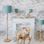 Błękitna lampka podłogowa Lniana Morska do pokoju dziecięcego