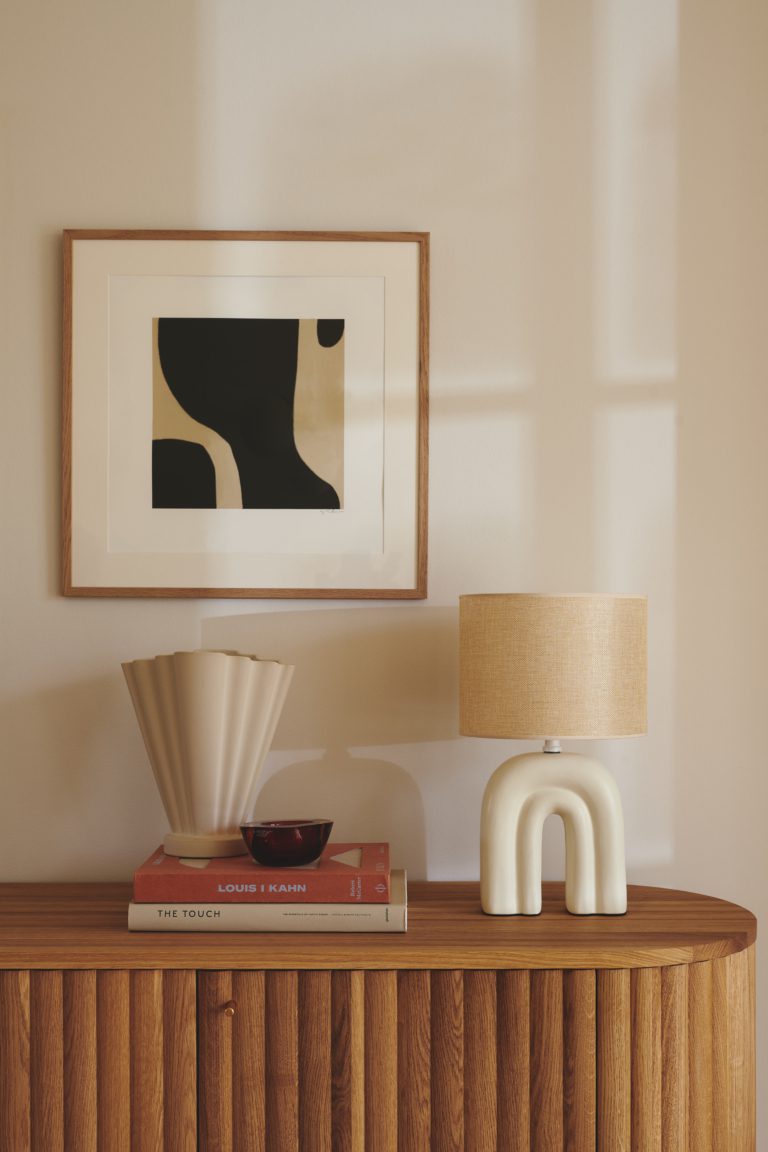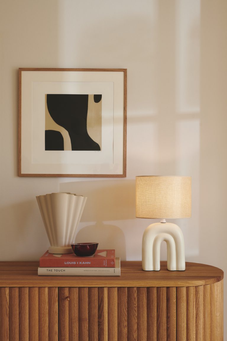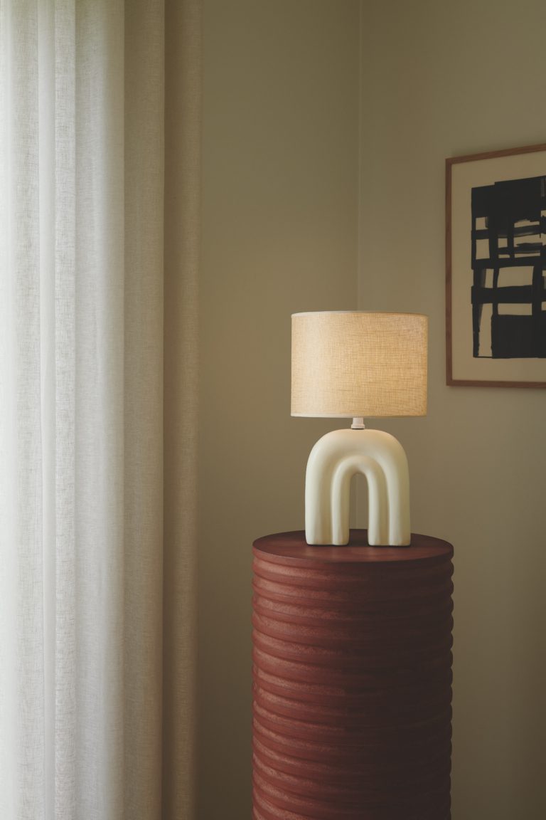 Najbardziej charakterystyczną cechą oferowanej lampy w stylu boho jest jej nietypowy wygląd. Model wyposażony jest w ceramiczną podstawę o oryginalnej formie, którą uzupełnia klasyczny tkaninowy klosz. Całość utrzymana jest w stonowanej beżowej kolorystyce. Boho lampa stołowa Haze w unikatowym designie doskonale komponuje się z dodatkami wykonanymi z rattanu, drewna, juty, bawełny oraz innych naturalnych surowców.