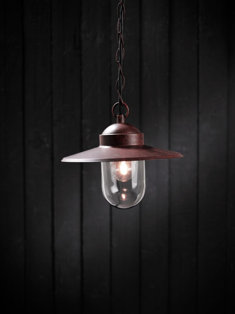 Jednak najbardziej charakterystyczną cechą lampy zewnętrznej wiszącej Luxemburg jest jej wygląd inspirowany stylistyką vintage. Model wyposażony jest w niezwykle oryginalny metalowo-szklany klosz, a całość utrzymana jest w nietypowej rdzawo-brązowej kolorystyce. Brązowa zewnętrzna lampa wisząca Luxemburg wyjątkowo dobrze pasuje do aranżacji industrialnych, rustykalnych i retro, dodając przestrzeni nostalgiczności.