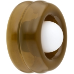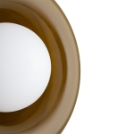 Bursztynowy kinkiet z kulistym kloszem Tevo opiera się na efektownym stelażu o pierścieniowym kształcie, w którego centrum umieszczono szklany klosz o kulistej formie. Wysokiej jakości szkło nadaje całości lekkości i ponadczasowej elegancji. Miękkie linie podkreślają nowoczesność oferowanej lampy ściennej i nadają przestrzeni łagodności. Połyskujący bursztynowy stelaż doskonale współgra z kloszem w matowym odcieniu opalu, tworząc przyjemny wizualnie kontrast, który dodaje wnętrzu charakteru.