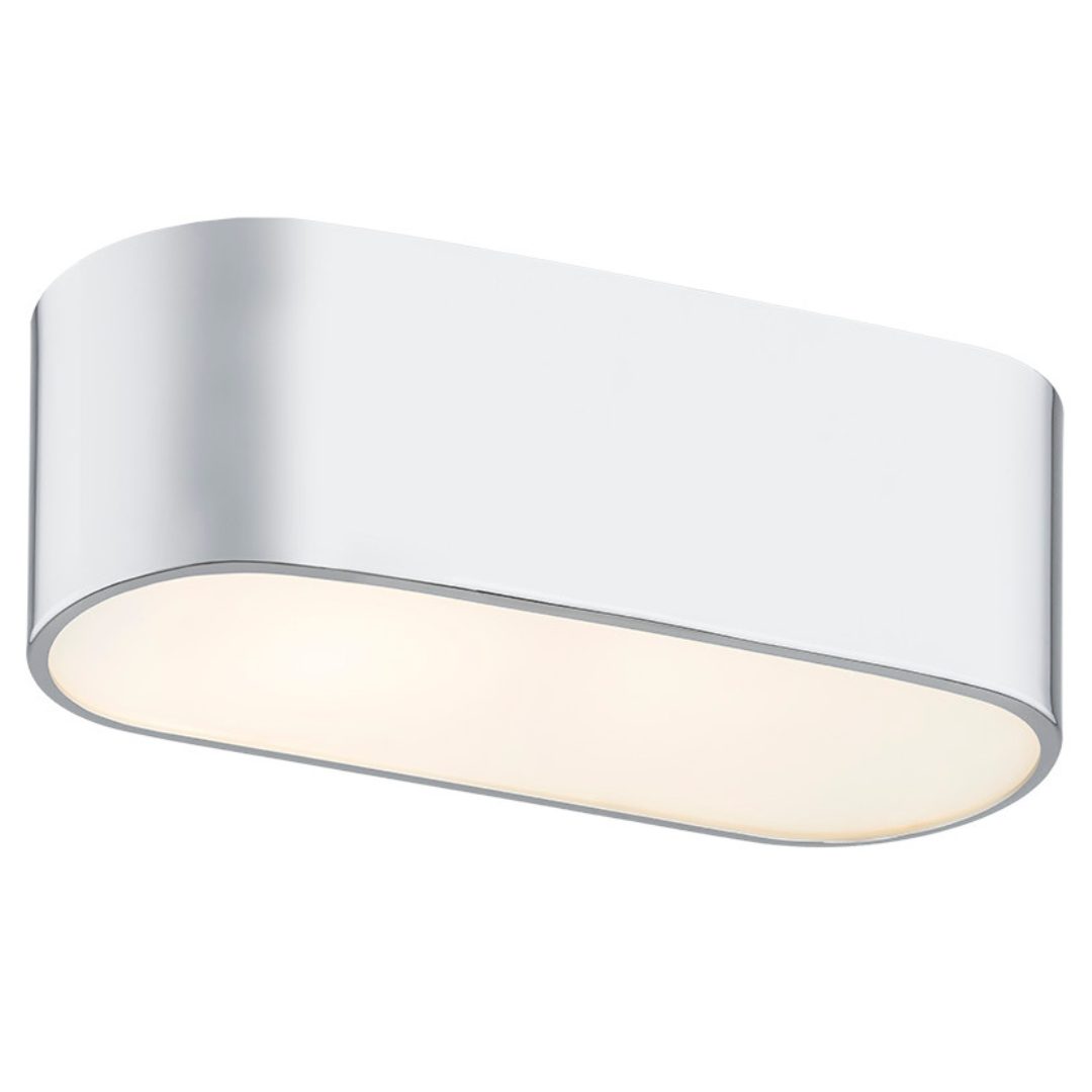 Chromowana plafoniera sufitowa Toni S o owalnym kształcie może emitować światło o maksymalnej mocy 15 W w dowolnie wybranej przez Ciebie barwie. W biurze najlepiej sprawdza się neutralne oświetlenie, zbliżone do naturalnego światła dziennego. Jeśli oferowany model ma służyć Ci jako lampa do domu, możesz postawić także na cieplejszą barwę – na przykład 3000 K.
