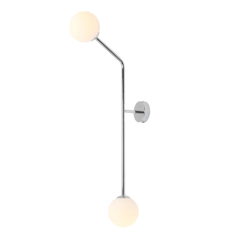 Chromowany kinkiet pionowy Matt Vertical posiada dwa kuliste klosze o średnicy 14 cm z mlecznobiałym szkłem. Dzięki zastosowaniu tego materiału, światło wydobywające się z prezentowanej lampy ściennej nie razi, jest przyjemne dla oczu a wieczorową porą tworzy w pokoju niepowtarzalny klimat. Kinkiet ścienny Matt Vertical można wyposażyć w dwa źródła światła o mocowaniu E14 (żarówki świecznikowe o maksymalnej wysokości 10,5 cm) i maksymalnej mocy 40 W. Model ten jest przystosowany do ekologicznych i ekonomicznych żarówek LED.