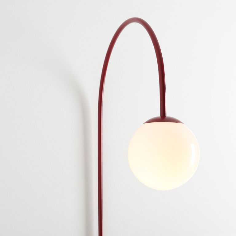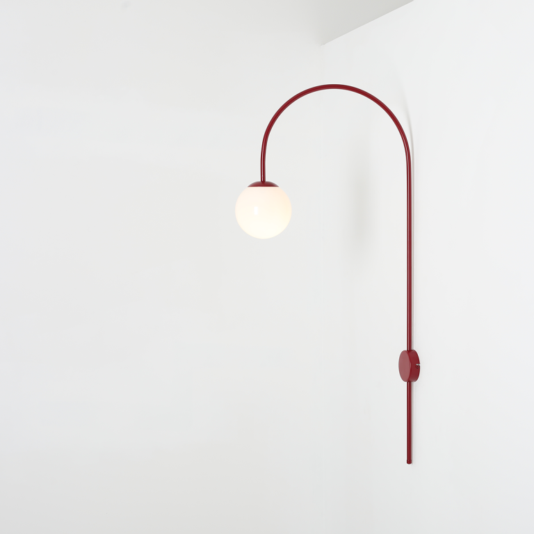 Ciemnoczerwona lampa ścienna w kształcie łuku Una