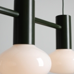 Ciemnozielona lampa wisząca z trzema opalowymi kloszami Flo 3 Moss