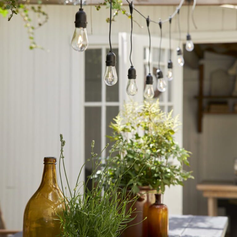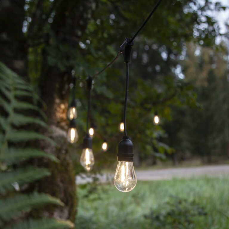 Czarna girlanda ogrodowa z dziesięcioma wiszącymi żarówkami, to propozycja oświetlenia dekoracyjnego zarówno do wnętrz jak i na balkon, taras czy do ogrodu. Efektowne, wiszące żarówki nadadzą wyjątkowego charakteru Twojej przestrzeni, a ciepłe światło sprawi, że wieczory staną się jeszcze bardziej klimatyczne. Czarny kolor wkomponuje się w aranżacje w stylu loftowym oraz nowoczesnym.