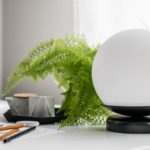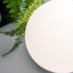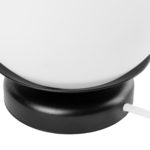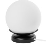 Prezentowany model ograniczony jest właściwie do dwóch głównych elementów, którymi są metalowa podstawa oraz szklany klosz. Obie te części kontrastują ze sobą nie tylko pod względem użytych materiałów, ale również kolorystyki. Czarny stelaż idealnie podkreśla mlecznobiały odcień klosza. Jeśli chodzi o wymiary, cala lampka stołowa ma wysokość 22,5 cm oraz głębokość równą średnicy szklanej kuli, czyli 20 cm. Kompaktowa wielkość sprawia, że możesz postawić KUUL ST niemal wszędzie – zarówno na stoliku, komodzie, jak i parapecie.