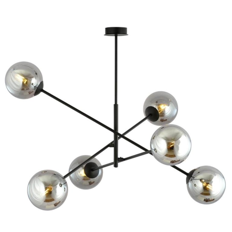 Aż sześć źródeł światła, które zamknięte są w połyskujących kloszach oraz funkcjonalny i solidny stelaż. Tak w skrócie wygląda czarna lampa na sufit Frix 6, która wręcz perfekcyjnie sprawdzi się w roli designerskiego żyrandola do salonu lub innego, bardziej przestronnego wnętrza. Jest to wysokiej jakości model, który z jednej strony spełnia swoją podstawową funkcję oświetleniową, a z drugiej stanowi wyjątkowo dekoracyjny element całego wystroju wnętrza.