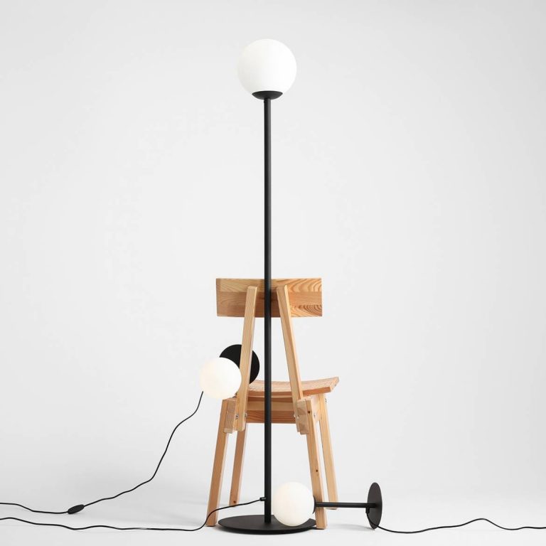 Czarna lampa podłogowa Dot wykonana została z prostego stelaża o wysokości 162 cm oraz szklanego klosza o kulistej formie, którego średnica wynosi 20 cm. Kolor stelaża idealnie będzie się zgrywał z praktycznie każdym wnętrzem – niezależnie od tego czy postawisz na jasną, ciemną czy może wielobarwną kolorystykę. Natomiast mlecznobiały klosz cudownie rozprasza światło, przez co abażur jest absolutnie zbędny! Blask żarówki nie razi, nawet gdy bezpośrednio spojrzysz w jej stronę.