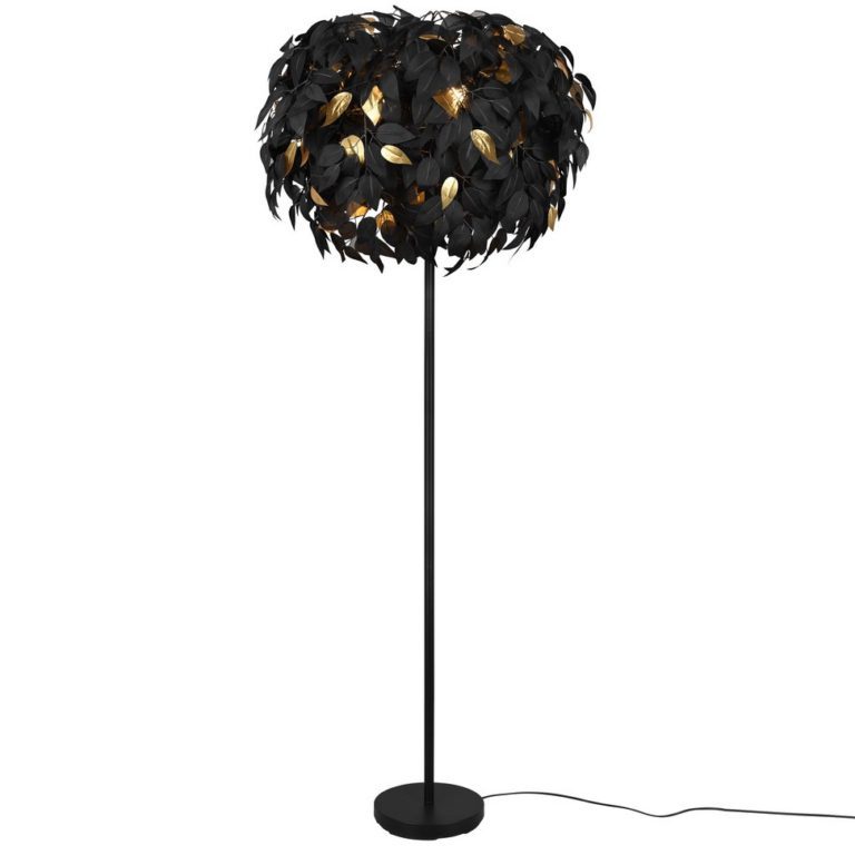 Czarna lampa podłogowa z nietypowym abażurem Leavy