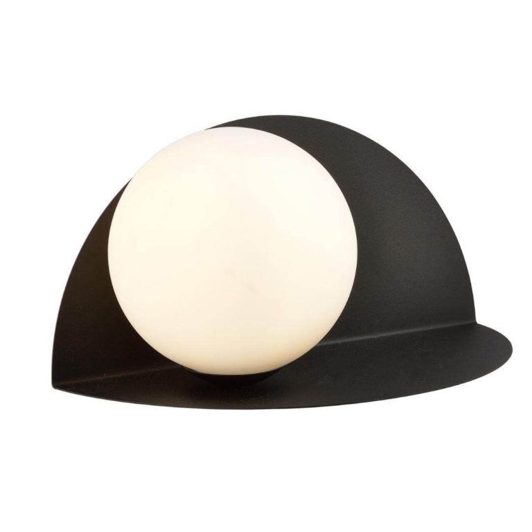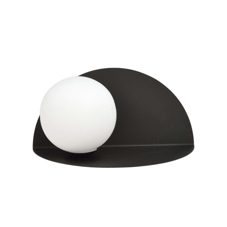 Model Eric Ball Oval to propozycja, która wyróżnia się, przede wszystkim, podwójną funkcją. To jednocześnie praktyczne oświetlenie i podręczna półka, którą tworzy stelaż montowany do ściany. Bezpośrednie źródło światła zamknięte jest w kulistym kloszu. Cała lampa przyścienna ma szerokość 30 cm i wysokość 15 cm. Wykonany z białego szkła klosz ma również średnicę 15 cm. Stelaż w formie półki ma czarny kolor i wyprodukowany został z wysokiej jakości stali lakierowanej.