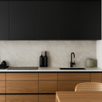 Biała lampa wisząca na listwie Enkel 3 L nad wyspę kuchenną