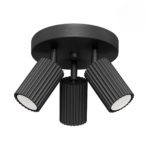 Niezwykle nowoczesna czarna lampa sufitowa Dolkar 3 na okrągłej podsufitce wyposażona jest w trzy regulowane reflektory, które można skierować w różne strony, co umożliwia precyzyjne dostosowanie kierunku padania światła od własnych potrzeb. To idealna lampa do kuchni i salonu, którą rozjaśnić możesz całe pomieszczenie lub tylko wybrane miejsca wnętrza.