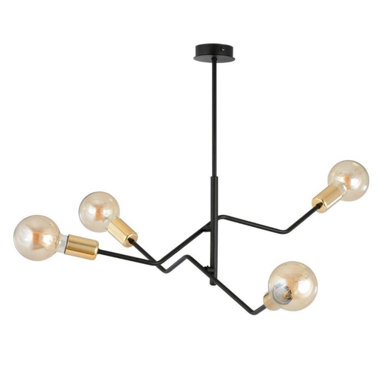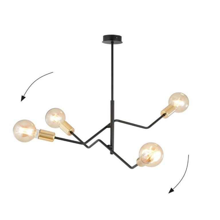 Jest to model, który szczególnie dobrze prezentuje się w dużej, loftowej przestrzeni, jednak jego wymiary pozwalają także na zamontowanie go w standardowym domu. Czarna lampa sufitowa Otis 4 ma wysokość 53 cm oraz szerokość 66 cm. Ponadto jej ciemna kolorystyka, rozjaśniona tylko złotymi akcentami, zgrywać się będzie doskonale z bardzo różnymi pomysłami aranżacyjnymi. Model ten możesz, na przykład, zestawić też ze stylem glamour.