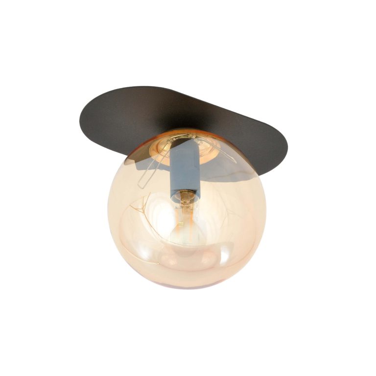 Aby dobrze poznać proponowany przez nas model, warto od razu przyjrzeć się jego budowie. Sufitowa lampa do wnętrz Rahim to dwie główne części: podsufitka ze stali lakierowanej na czarno oraz klosz ze szkła o miodowym zabarwieniu. Całość jest prosta, a jednocześnie przyciąga uwagę designerskim wyglądem, w szczególności szklaną kulą. Miodowy klosz ociepla światło, płynące z jego wnętrza, dzięki czemu dane pomieszczenie wypełnia się wyjątkowo przyjemną atmosferą.